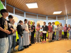 Die Kinder der Klassen 4a und 4b konnten sich zu Beginn des Halbjahres freiwillig für unsere Theater-AG bei Frau Schulte und Frau Spanke anmelden. In den letzten Monaten haben sie ein tolles Stück zum Thema „Abschluss von der Grundschule“ einstudiert und den übrigen Klassen in der letzten Schulwoche in der Aula präsentiert.